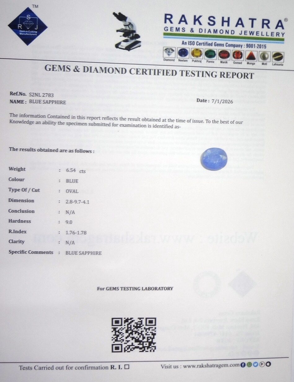 | SPECIFIC COMMENTS: | BLUE SAPPHIRE |