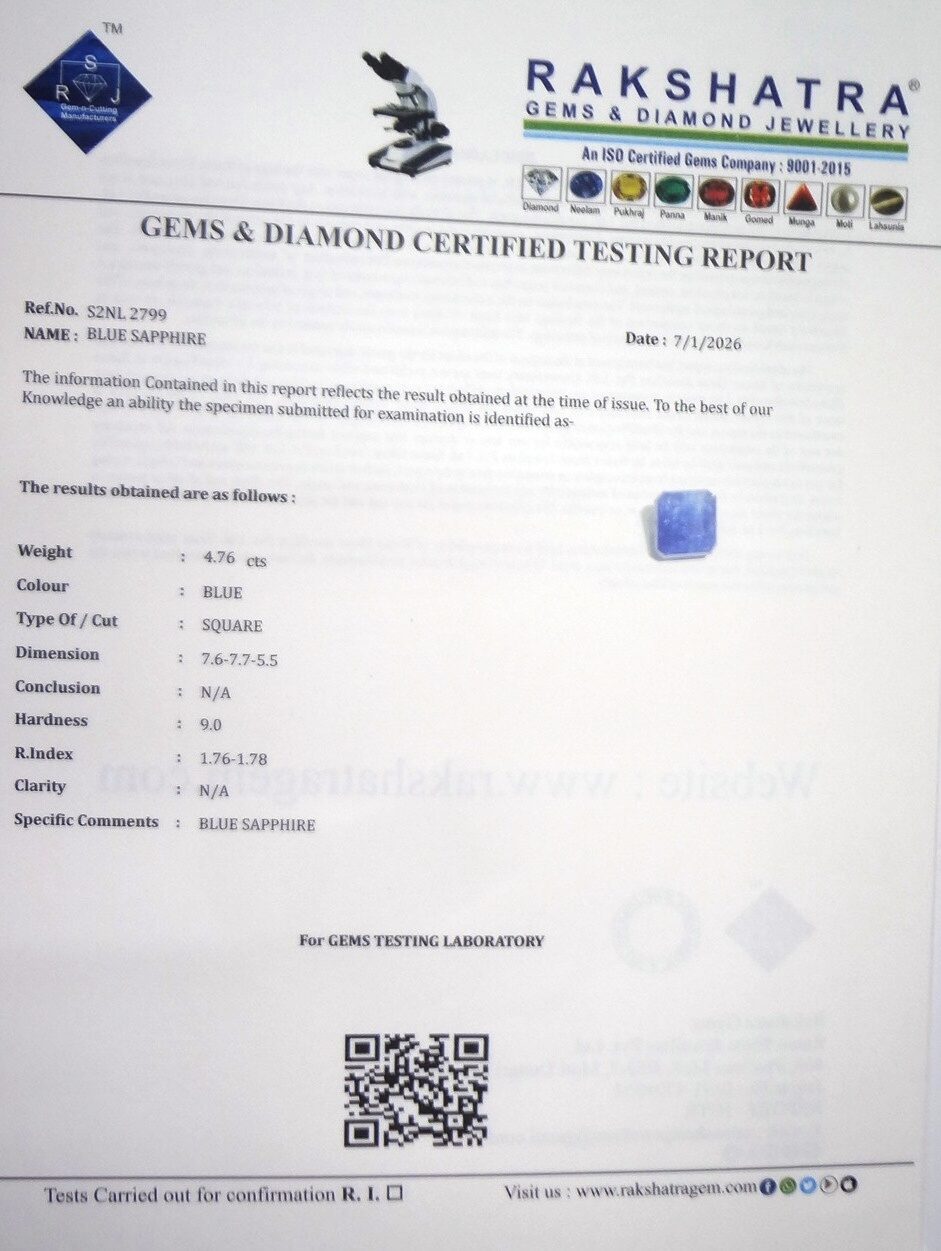 | SPECIFIC COMMENTS: | BLUE SAPPHIRE |