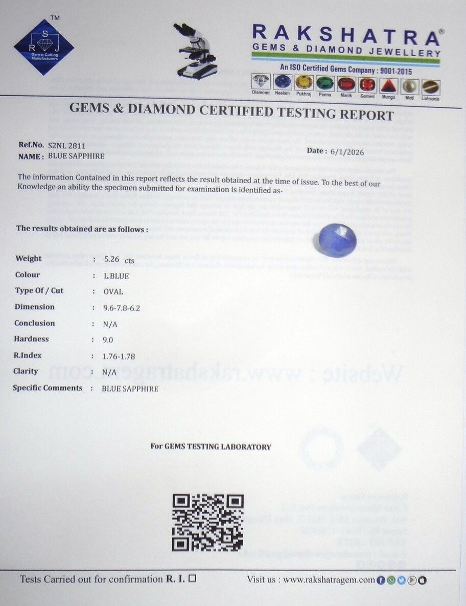 | SPECIFIC COMMENTS: | BLUE SAPPHIRE |