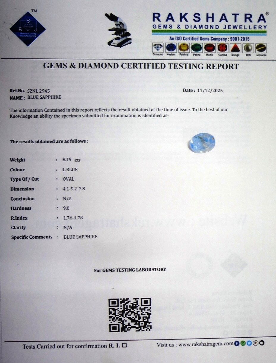 | SPECIFIC COMMENTS: | BLUE SAPPHIRE |