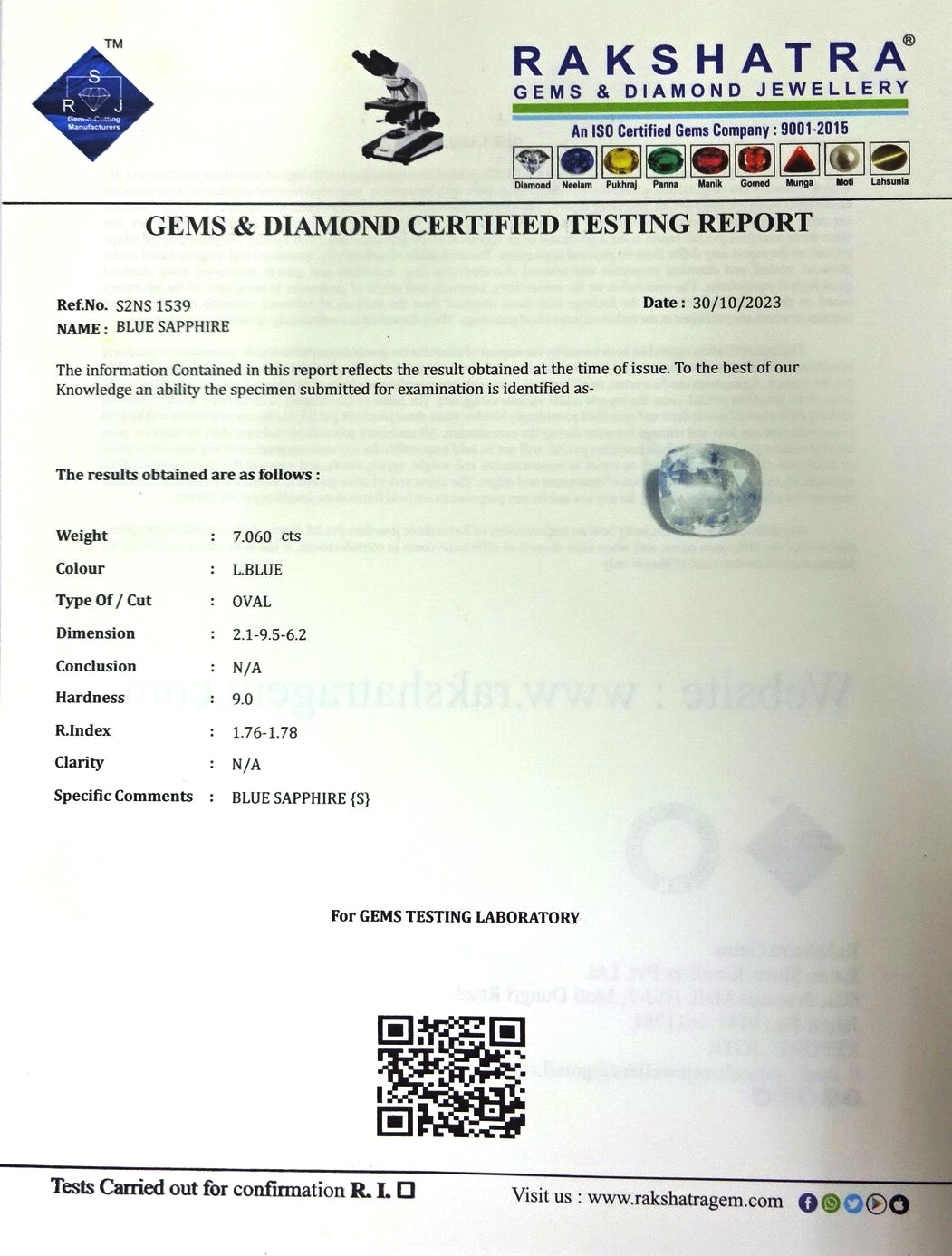 | SPECIFIC COMMENTS: | BLUE SAPPHIRE {S} |