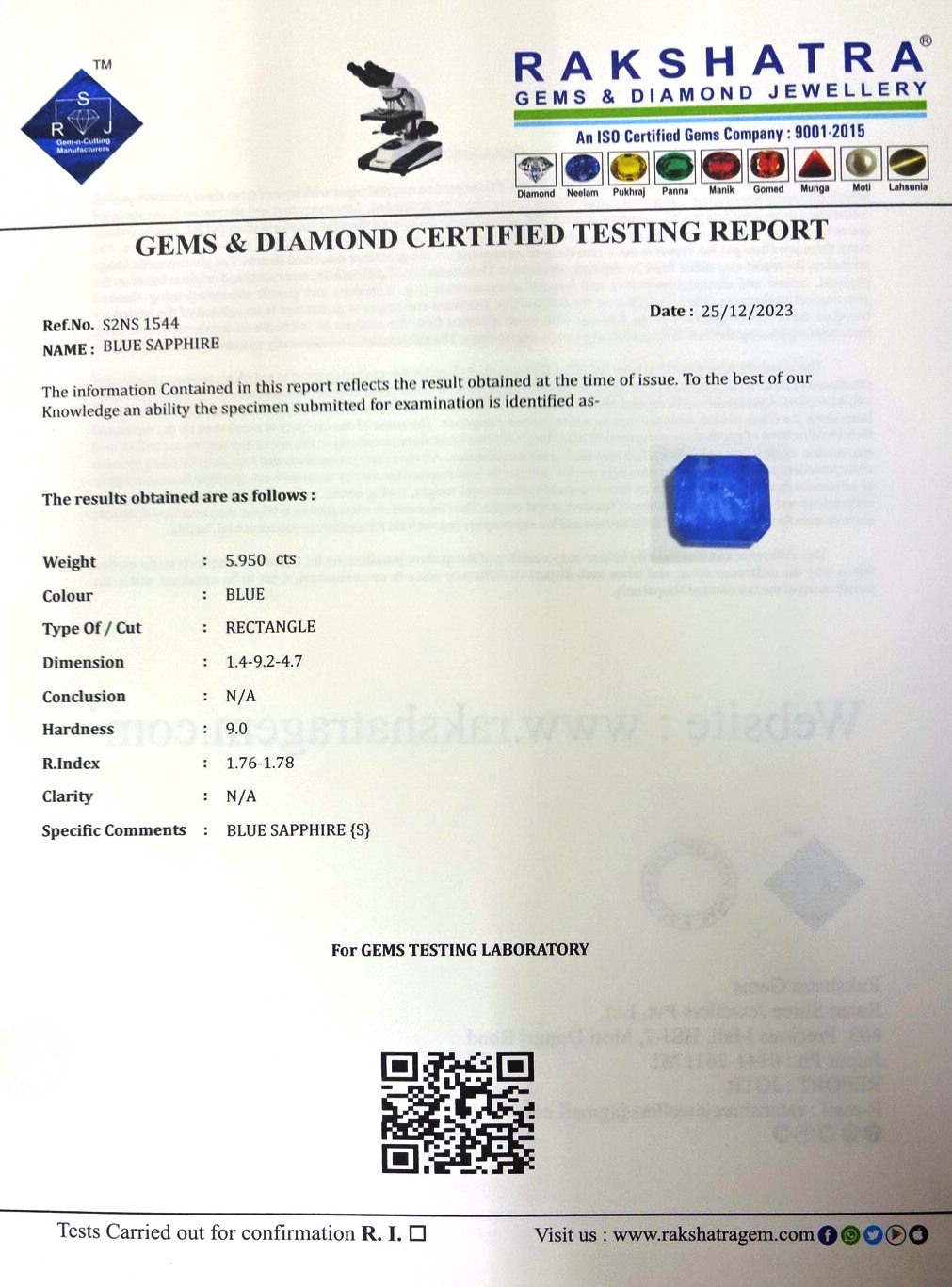 | SPECIFIC COMMENTS: | BLUE SAPPHIRE { S } |