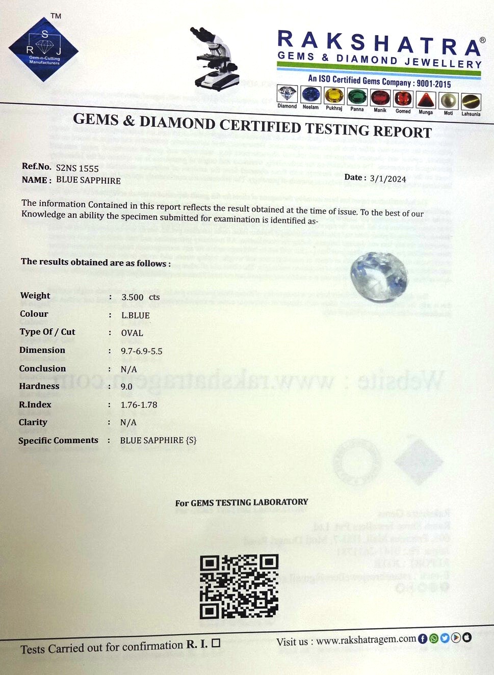 | SPECIFIC COMMENTS: | BLUE SAPPHIRE { S } |