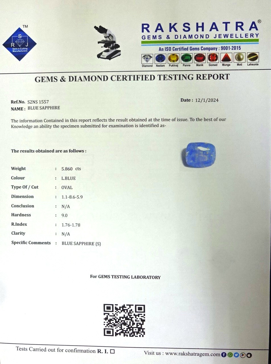 | SPECIFIC COMMENTS: | BLUE SAPPHIRE { S } |