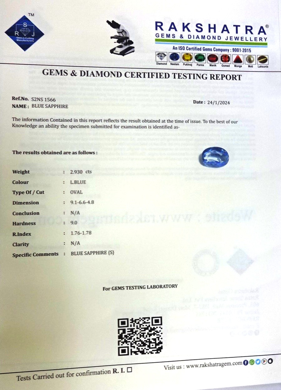 | SPECIFIC COMMENTS: | BLUE SAPPHIRE {S} |