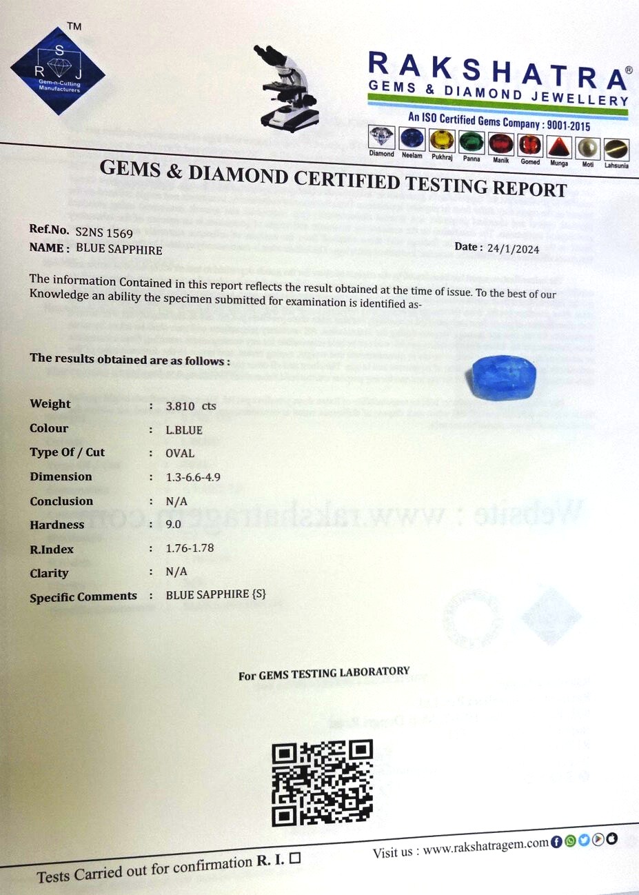 | SPECIFIC COMMENTS: | BLUE SAPPHIRE {S} |