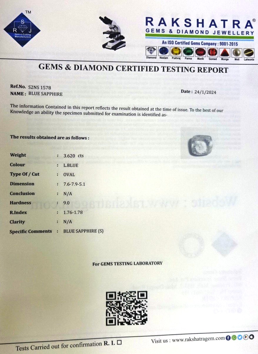 | SPECIFIC COMMENTS: | BLUE SAPPHIRE {S} |