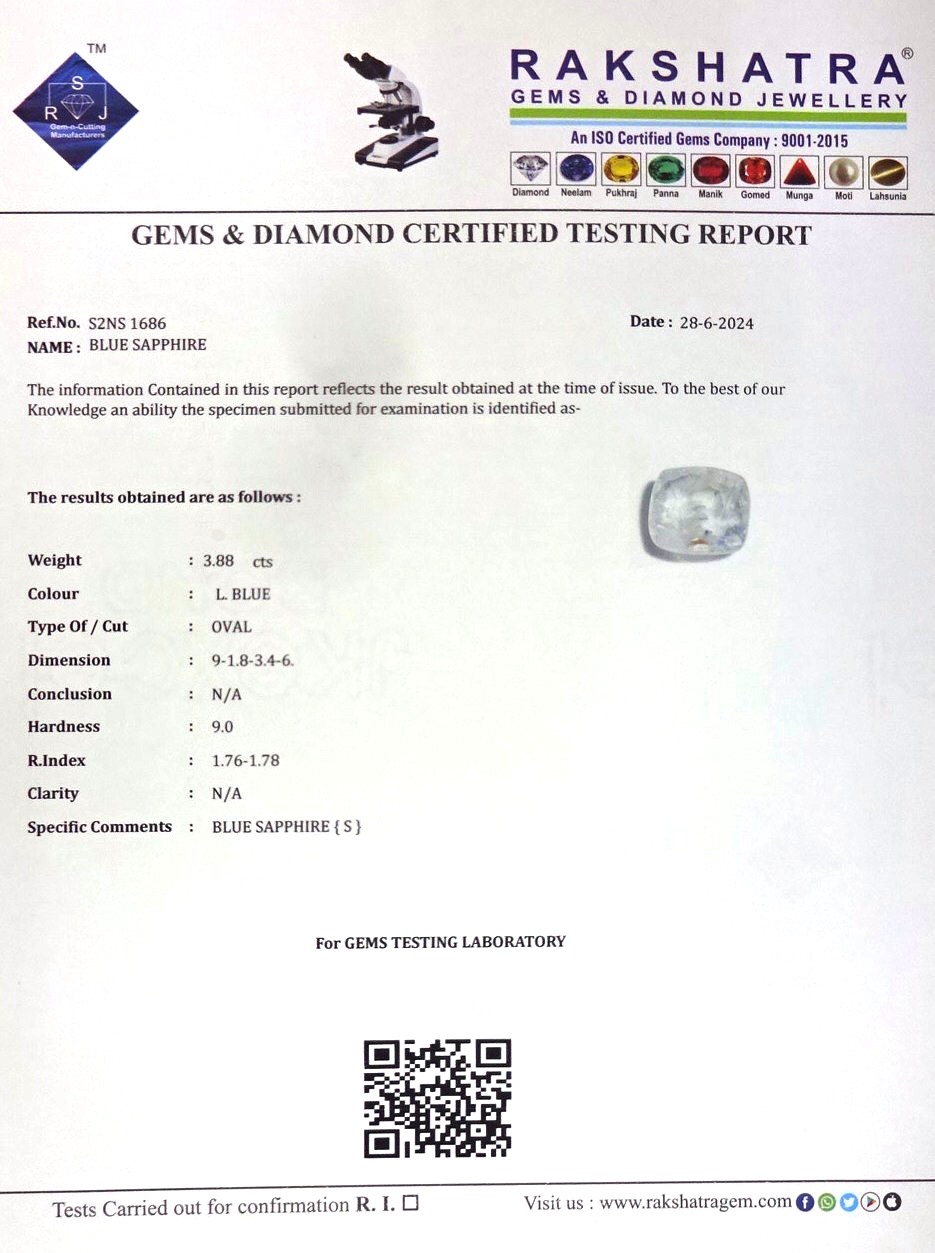 | SPECIFIC COMMENTS: | BLUE SAPPHIRE {S} |