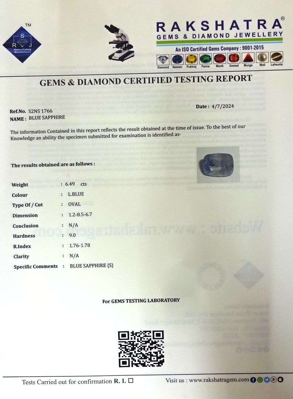 | SPECIFIC COMMENTS: | BLUE SAPPHIRE {S} |