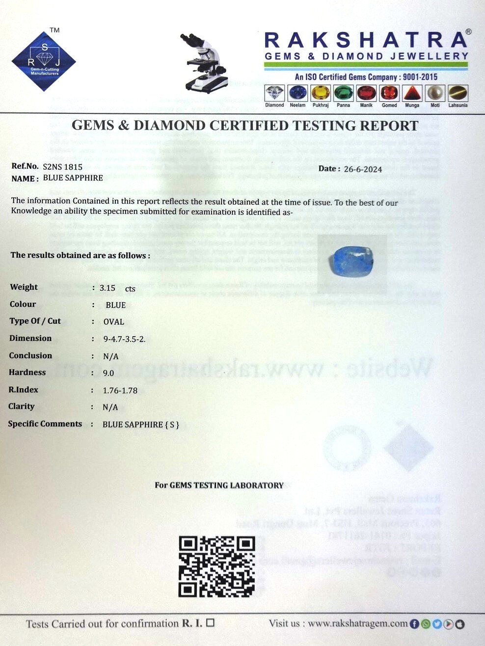 | SPECIFIC COMMENTS: | BLUE SAPPHIRE {S} |
