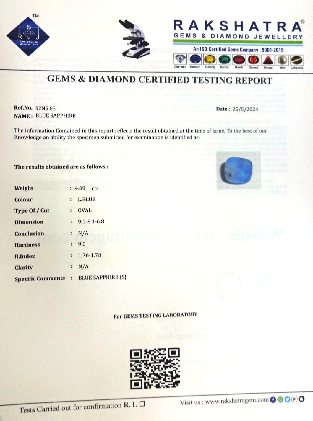 | SPECIFIC COMMENTS: | BLUE SAPPHIRE {S} |