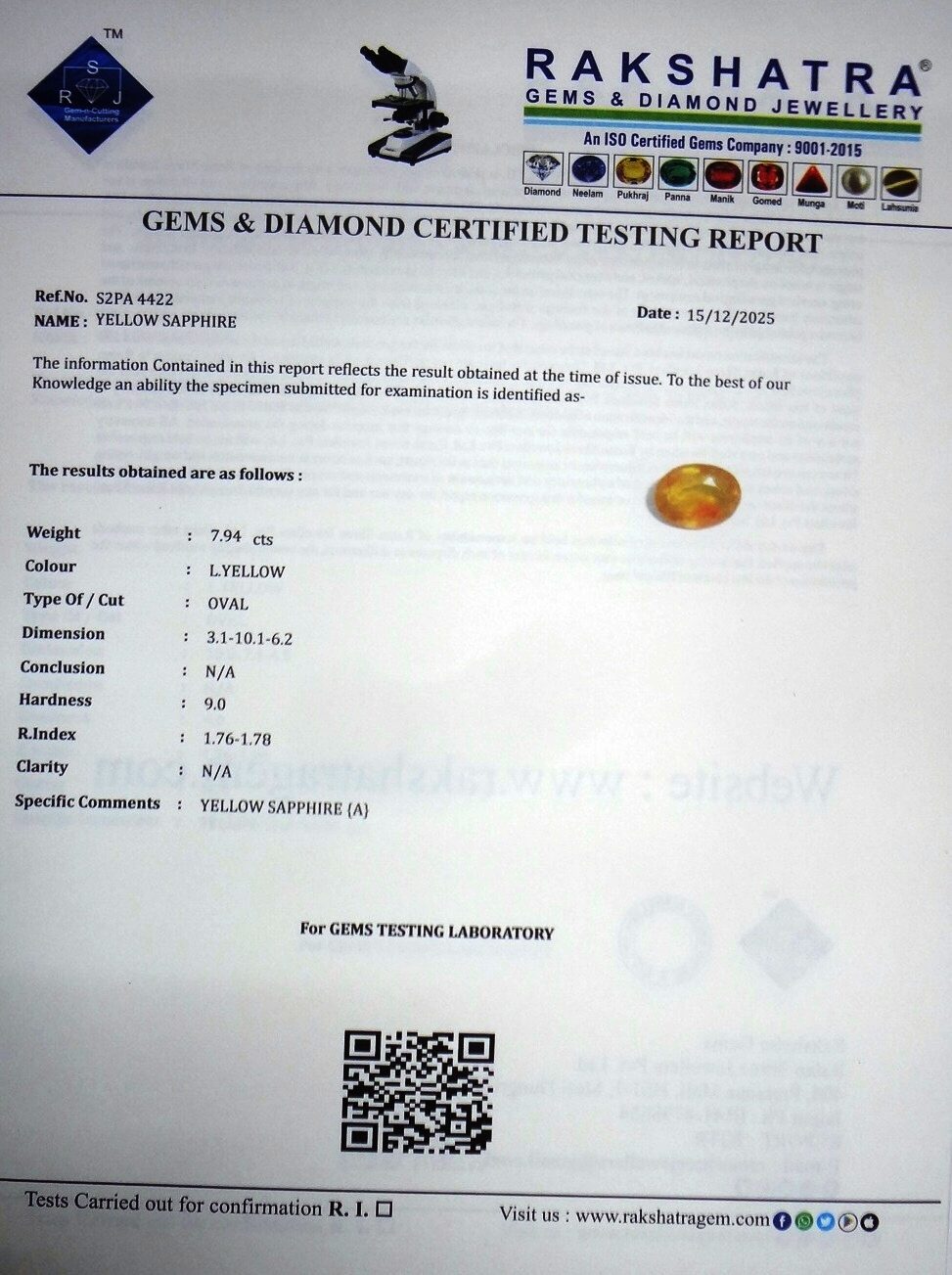 | SPECIFIC COMMENTS: | YELLOW SAPPHIRE { A } |