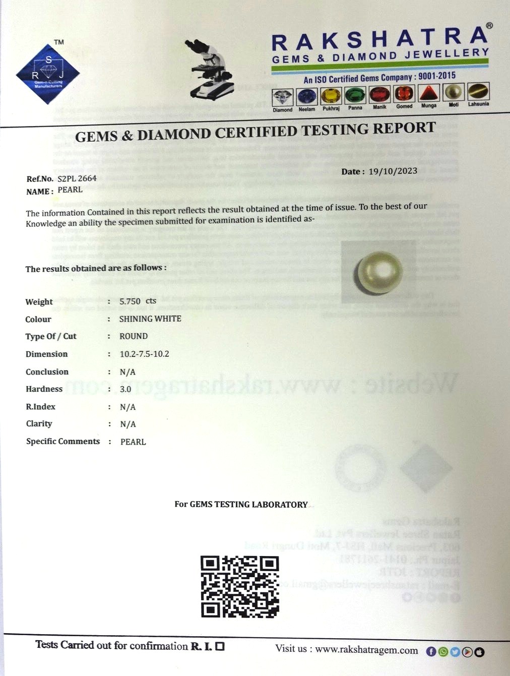 | WEIGHT: | 5.75 CTS |