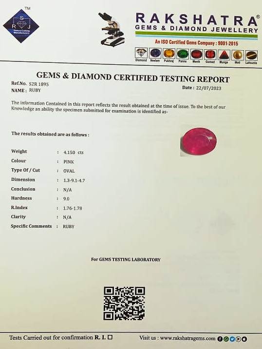 | WEIGHT: | 4.15 CTS |