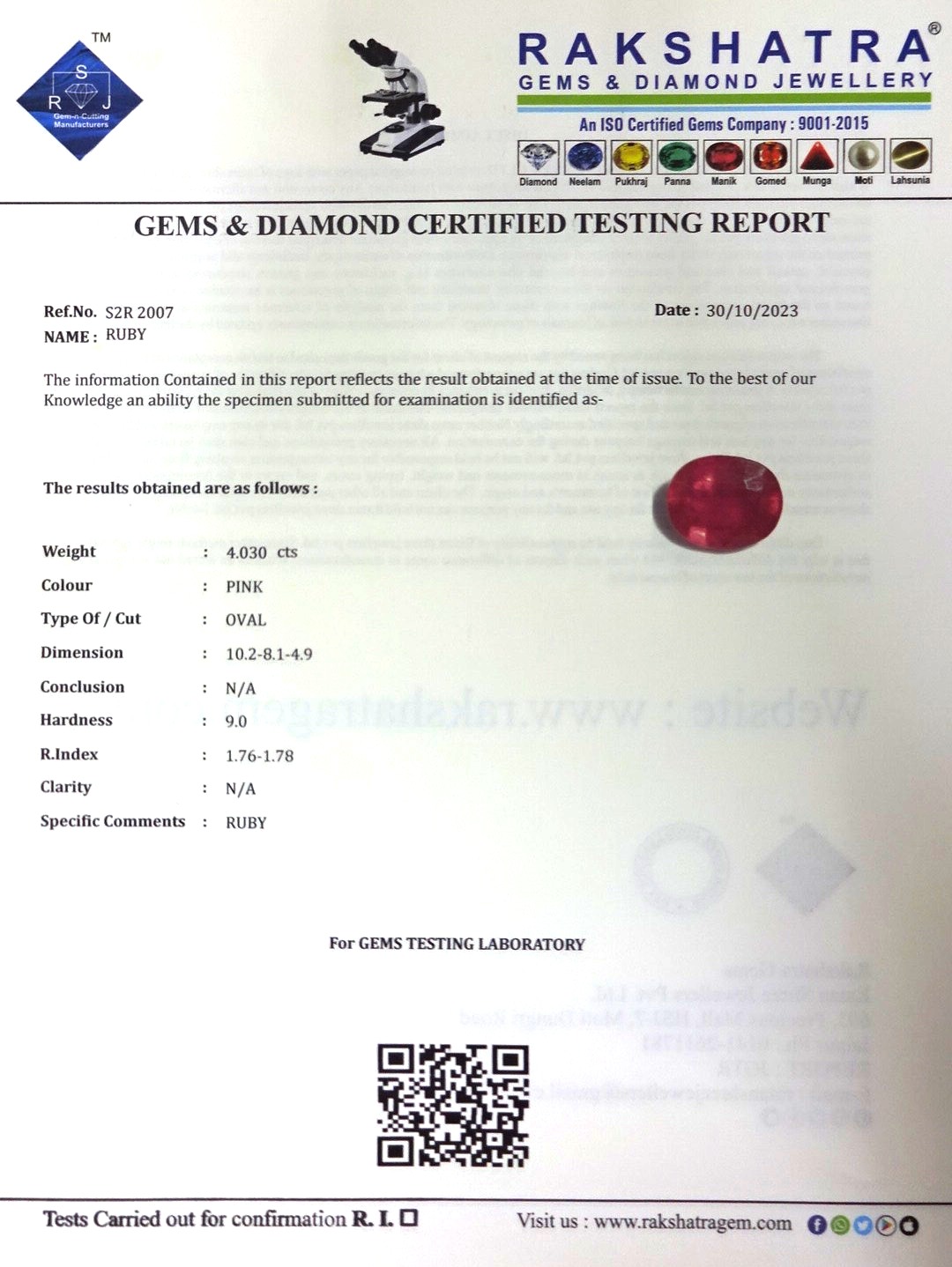 | WEIGHT: | 4.03 CTS |