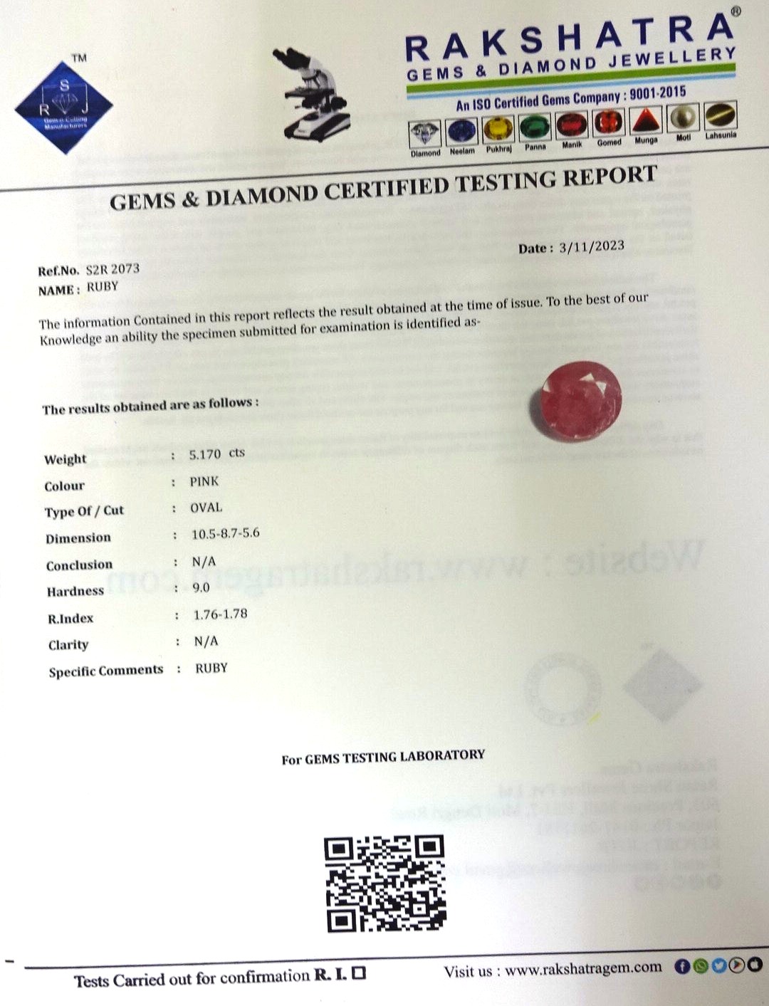 | WEIGHT: | 5.17 CTS |
