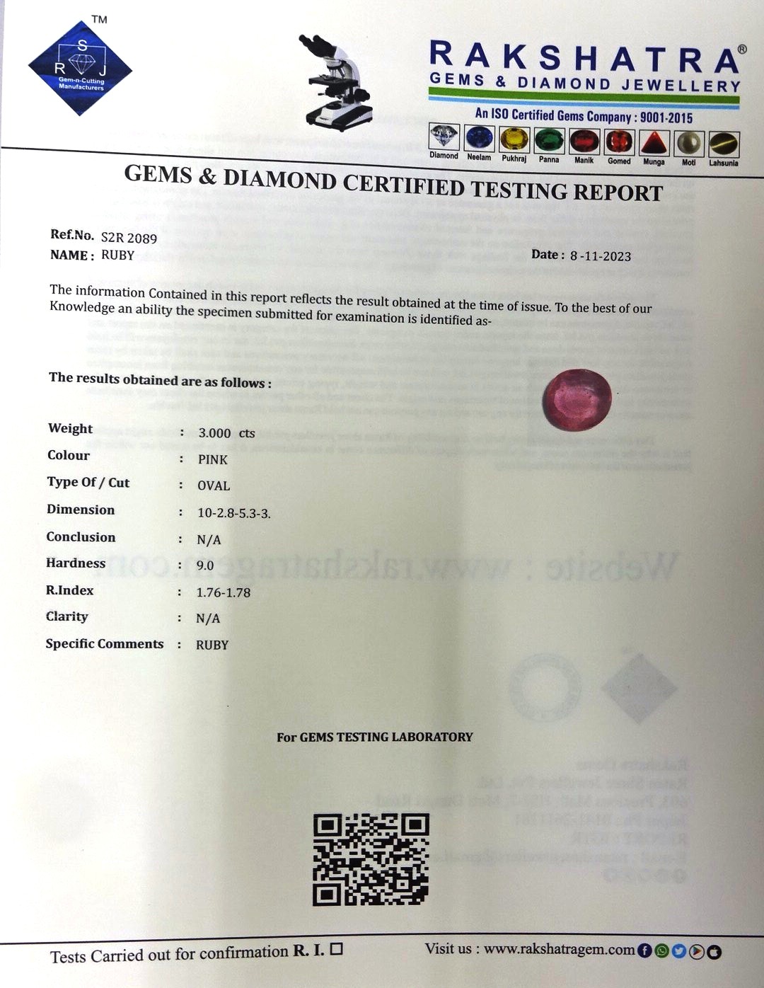 | WEIGHT: | 3.00 CTS |