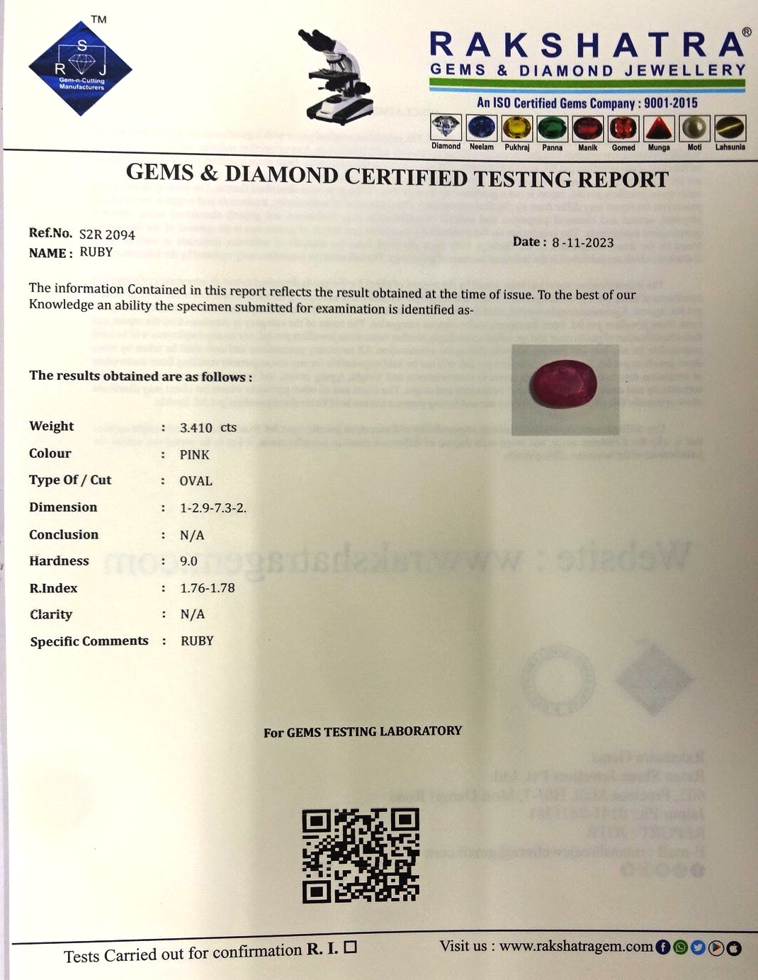 | WEIGHT: | 3.41 CTS |