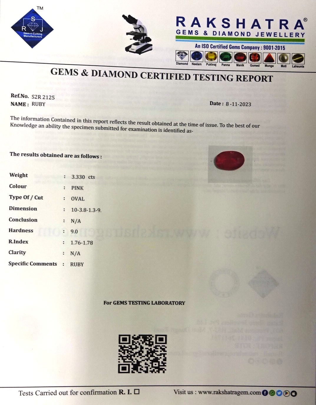 | WEIGHT: | 3.33 CTS |