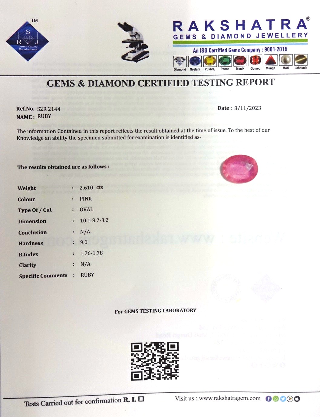 | WEIGHT: | 2.61 CTS |