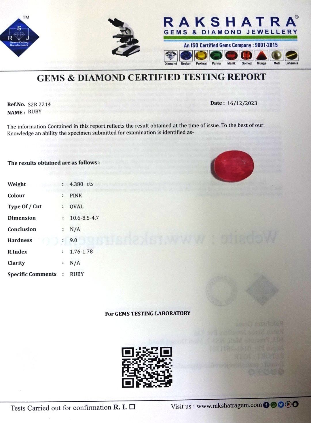 | WEIGHT: | 4.38 CTS |