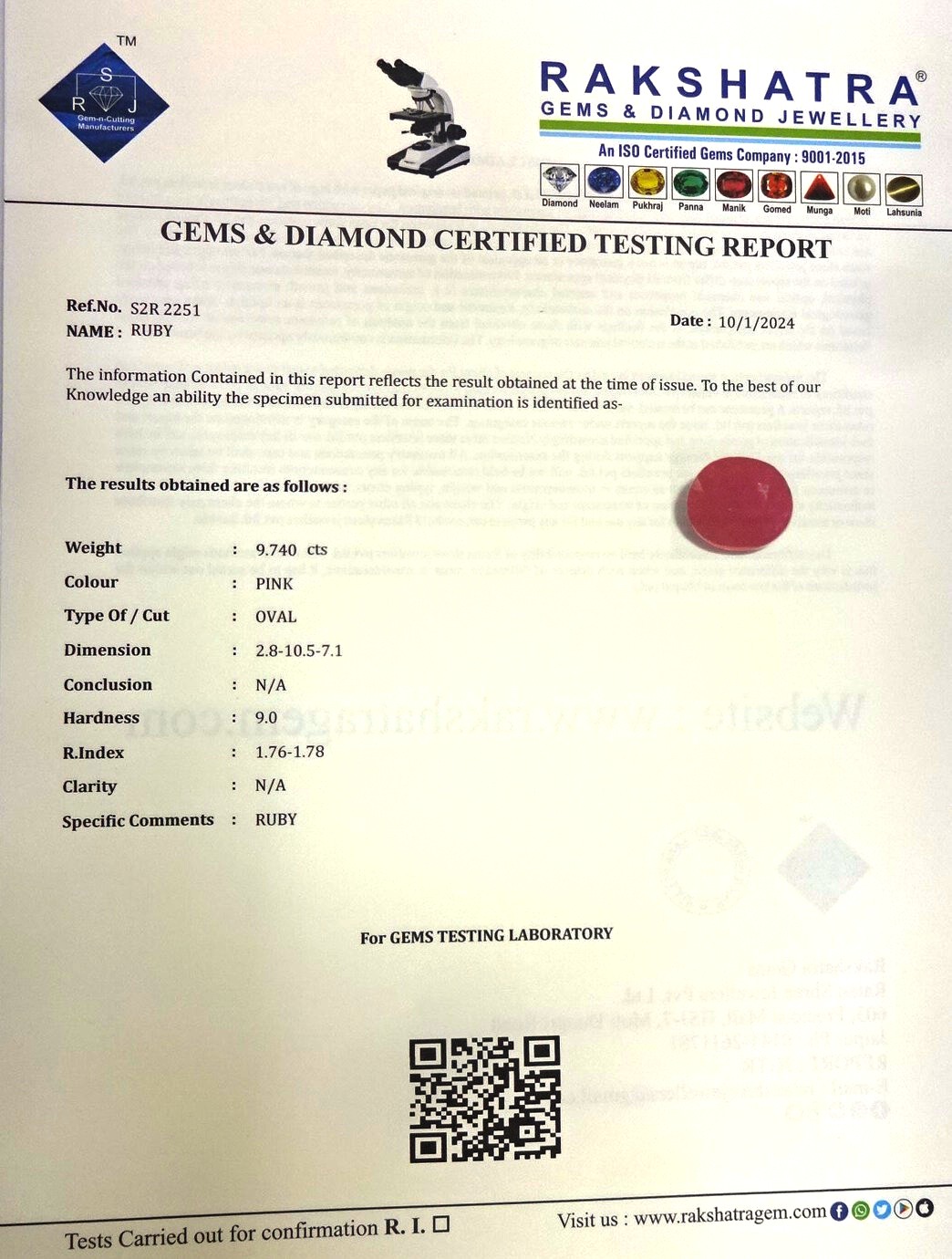 | WEIGHT: | 9.74 CTS |