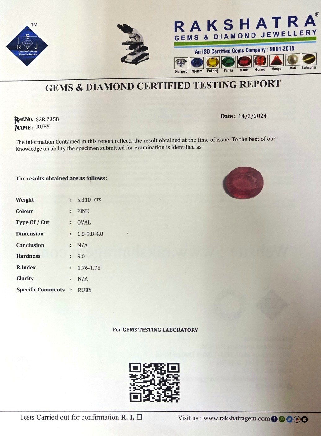 | WEIGHT: | 5.31 CTS |