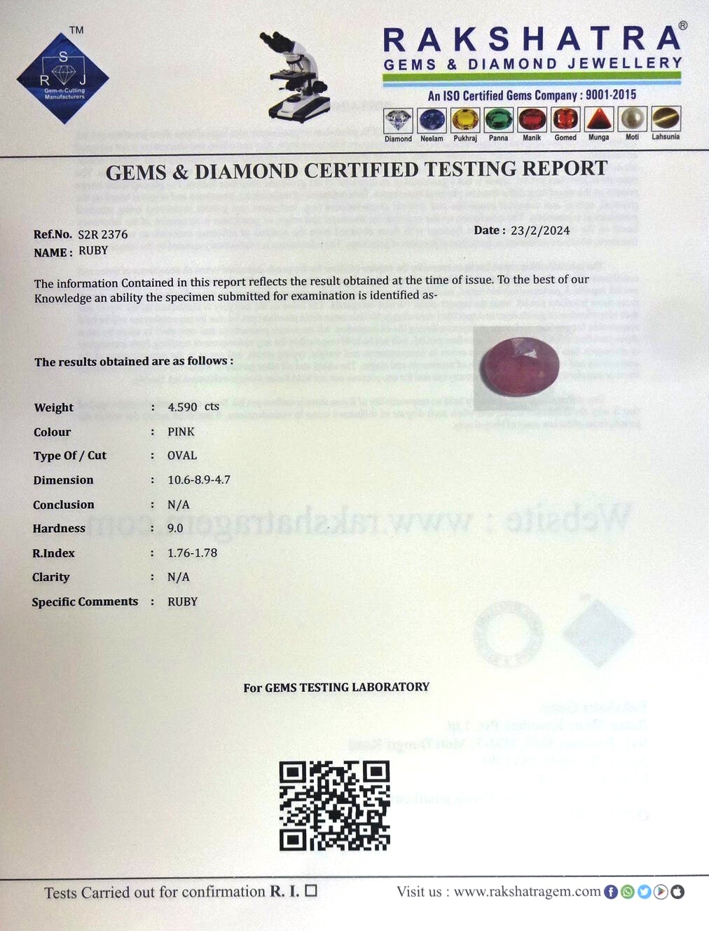 | WEIGHT: | 4.59 CTS |