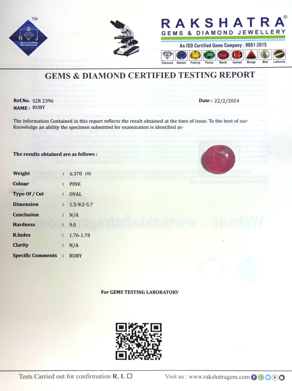 | WEIGHT: | 6.37 CTS |