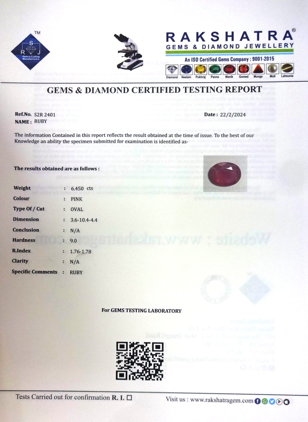 | WEIGHT: | 6.45 CTS |