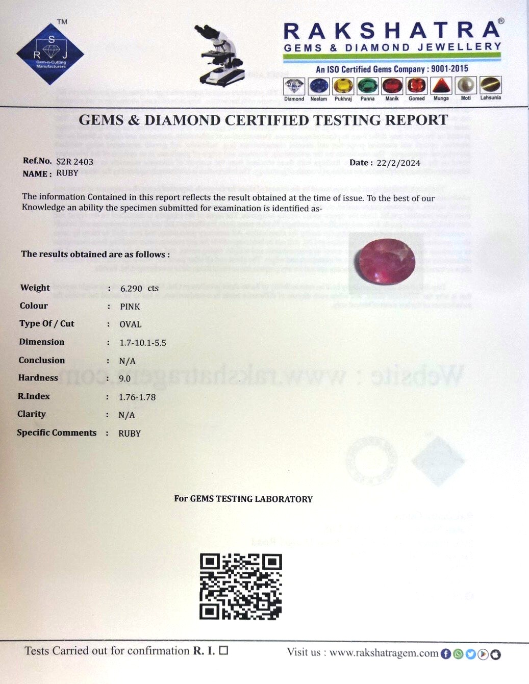 | WEIGHT: | 6.29 CTS |