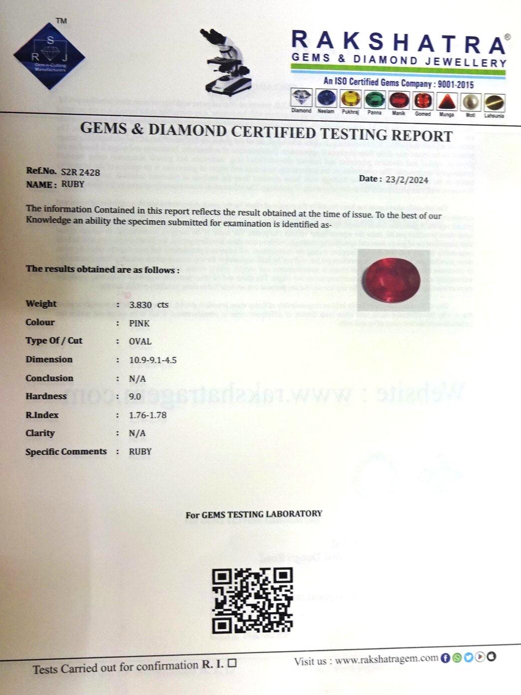 | WEIGHT: | 3.83 CTS |