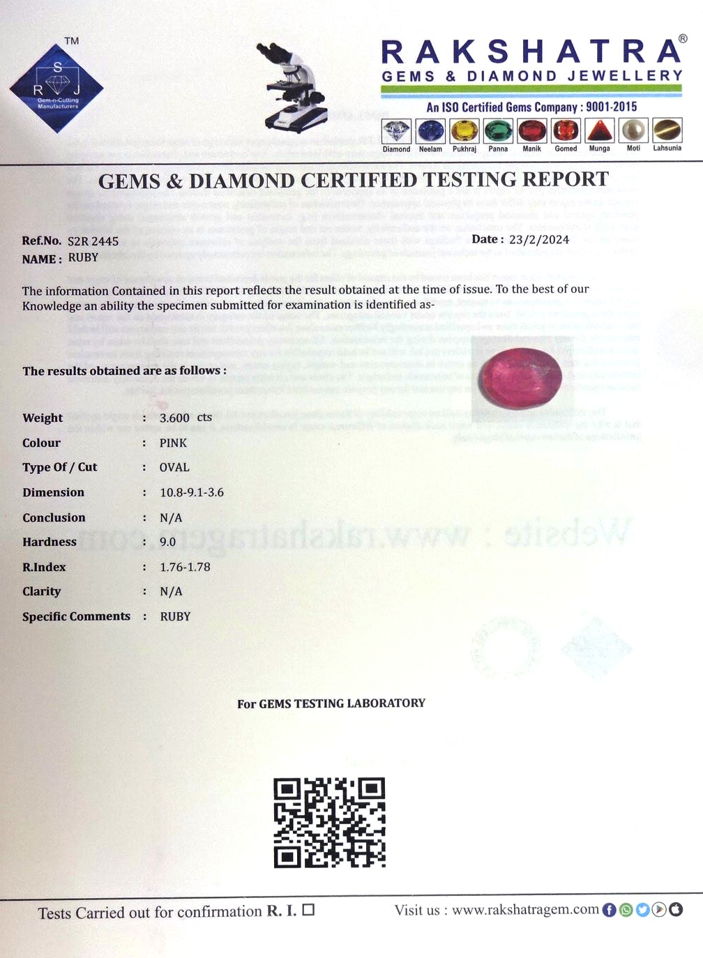 | WEIGHT: | 3.60 CTS |