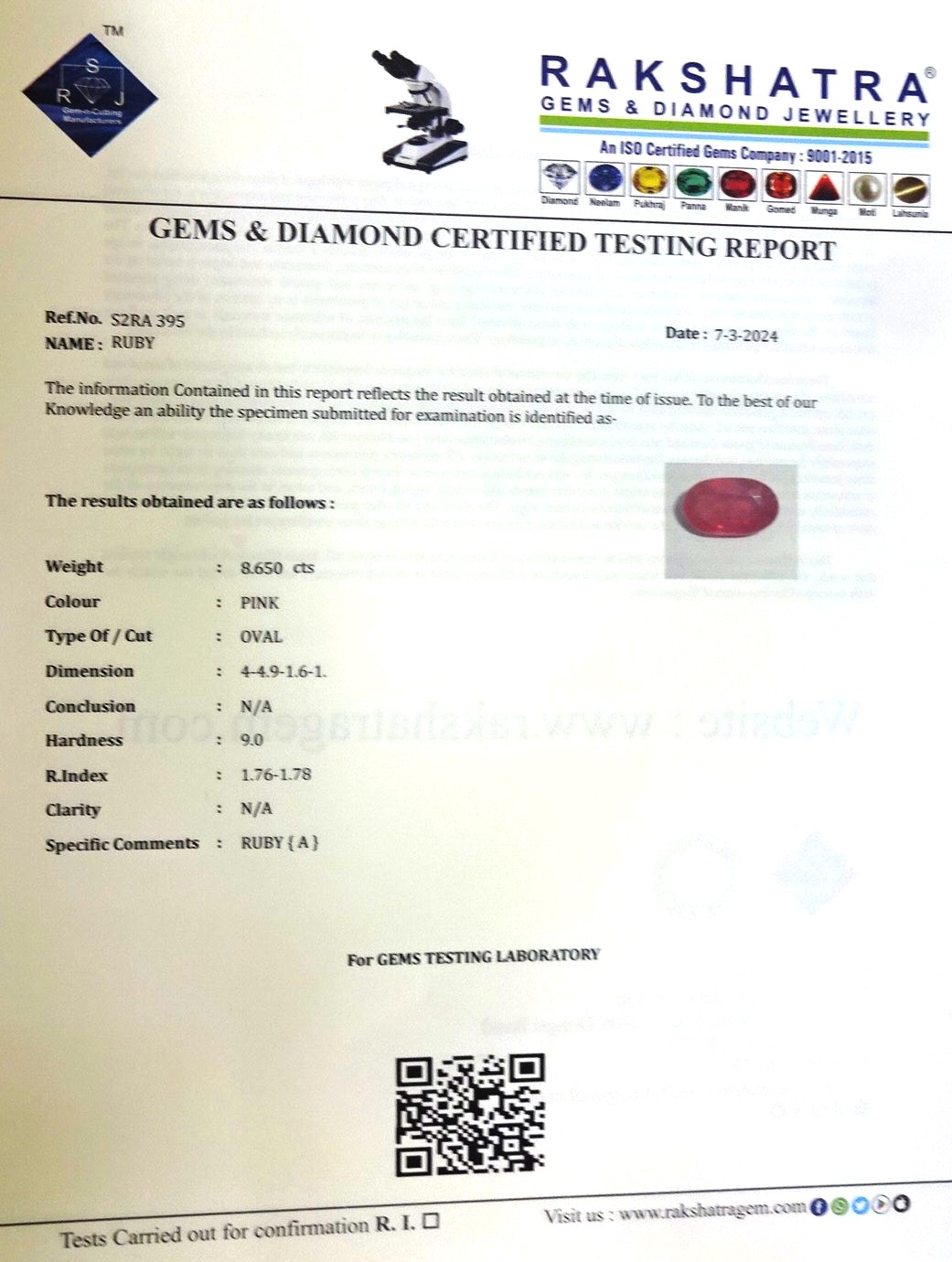 | WEIGHT: | 8.65 CTS |
