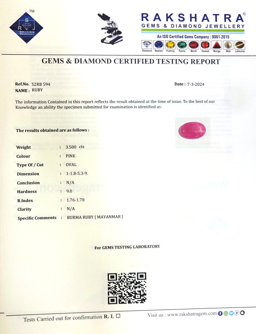 | SPECIFIC COMMENTS: | BURMA RUBY { MAYANMAR } |