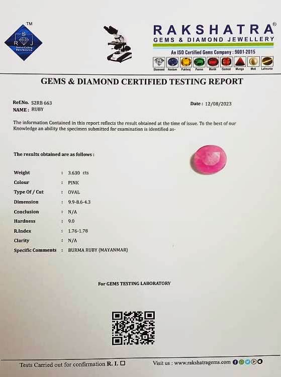 | SPECIFIC COMMENTS: | BURMA RUBY {MAYANMAR} |