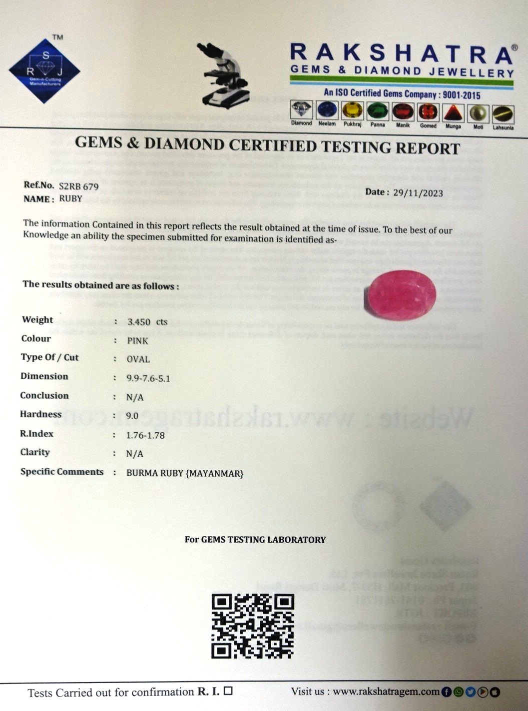 | SPECIFIC COMMENTS: | BURMA RUBY {MAYANMAR}  |