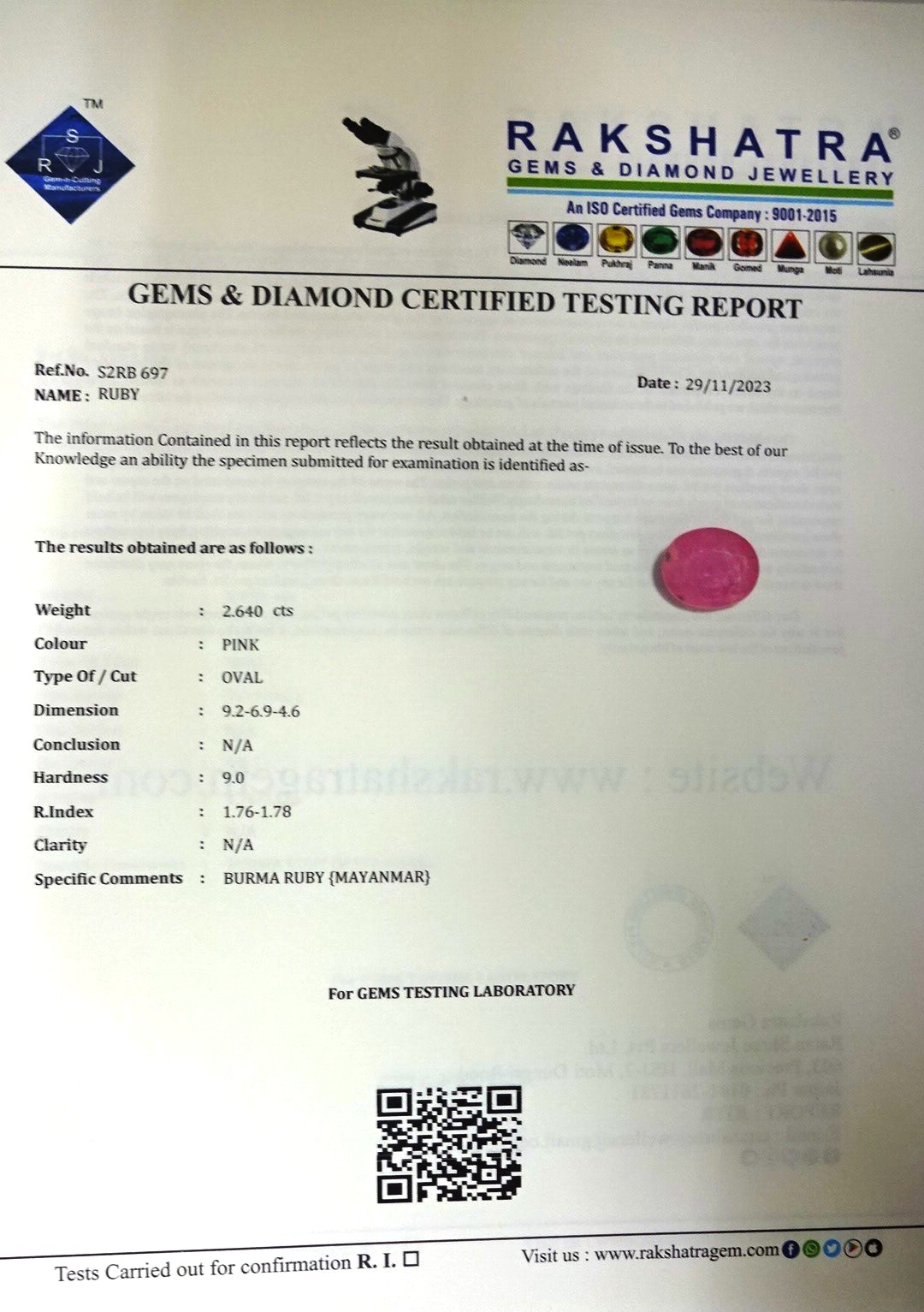 | SPECIFIC COMMENTS: | BURMA RUBY {MAYANMAR} |