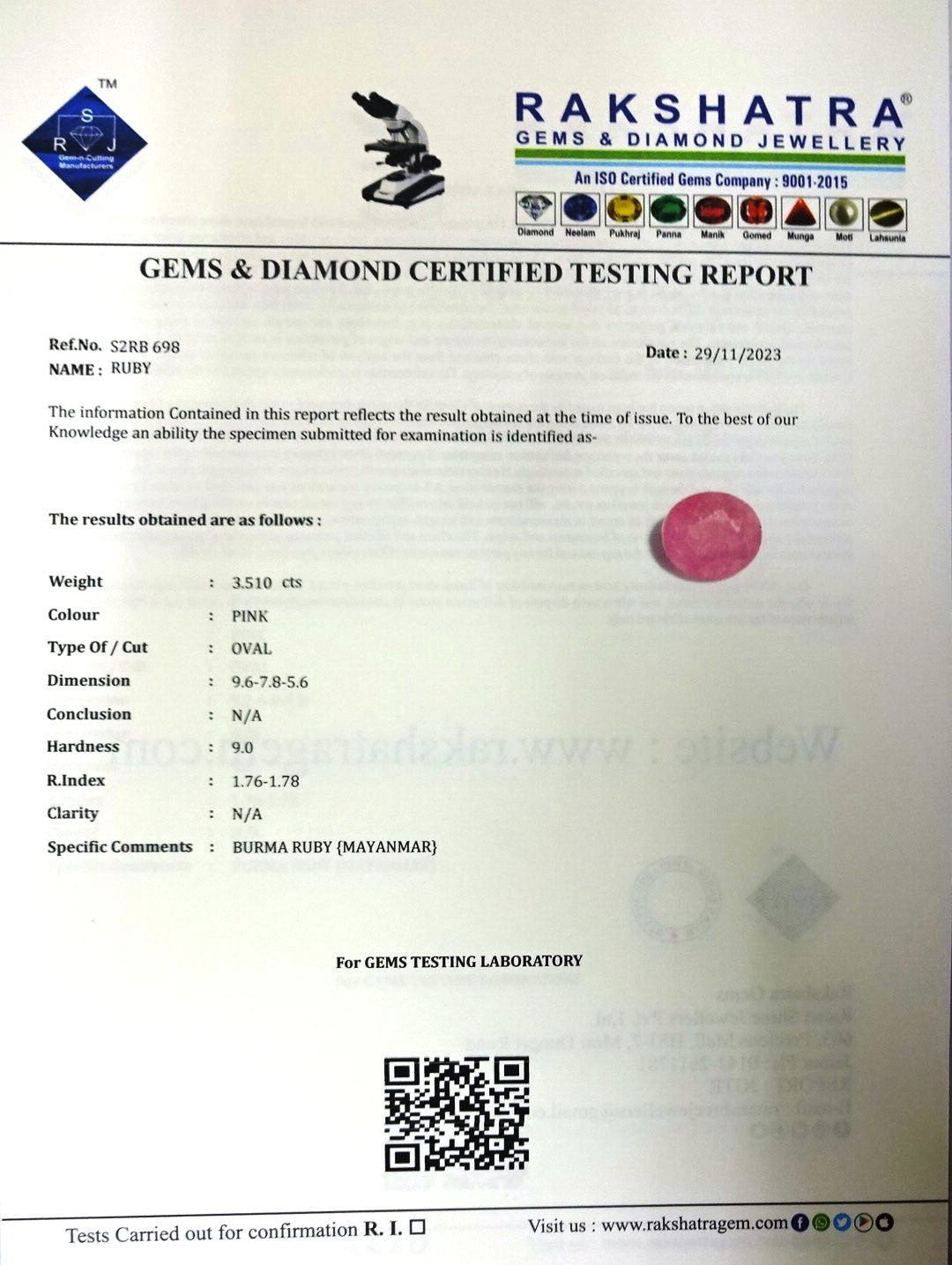 | SPECIFIC COMMENTS: | BURMA RUBY {MAYANMAR}  |