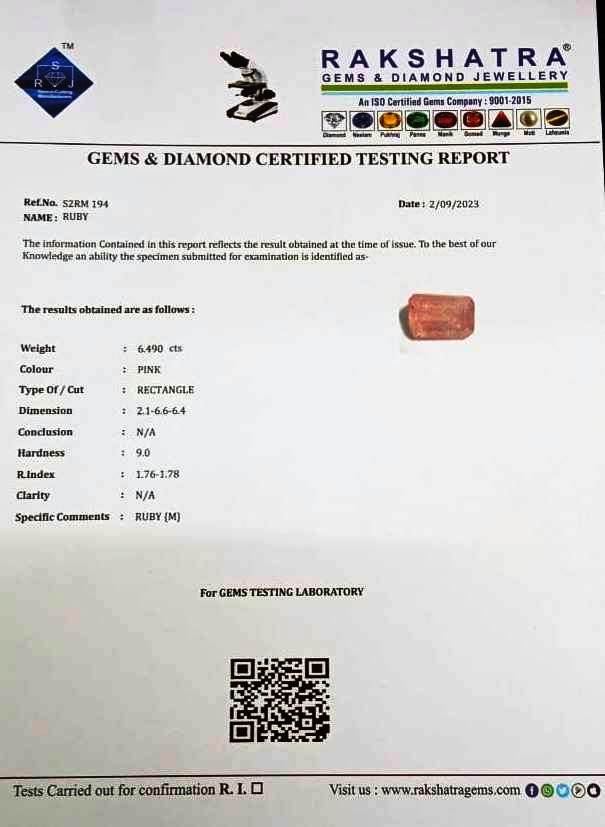 | SPECIFIC COMMENTS: | RUBY {M} |