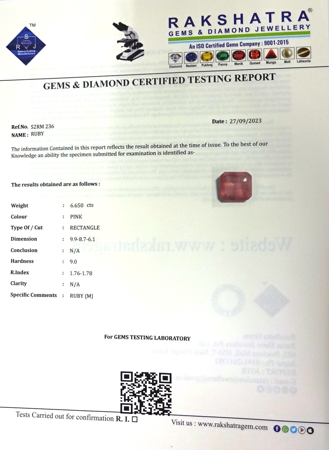 | WEIGHT: | 6.65 CTS |