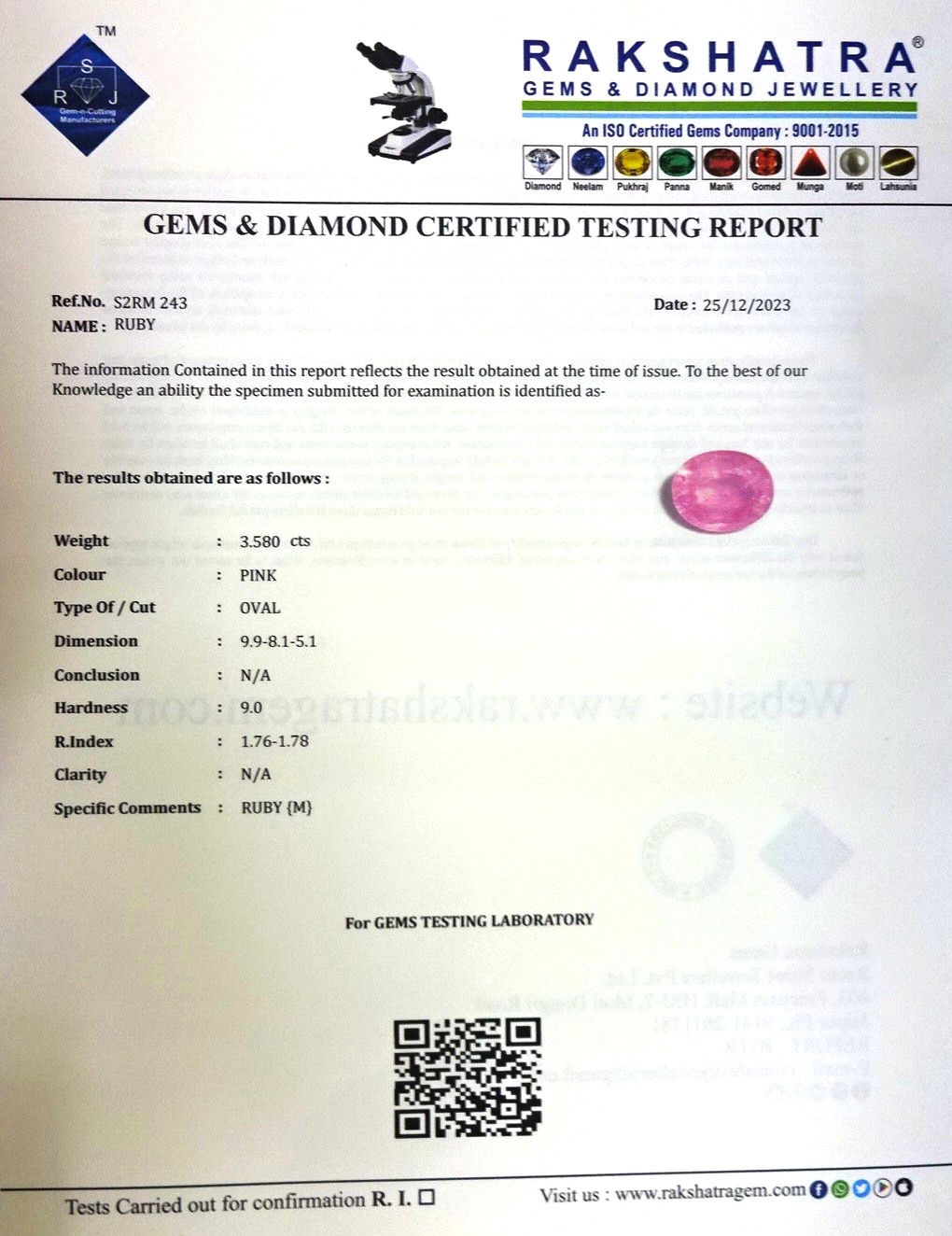 | SPECIFIC COMMENTS: | RUBY { M } |