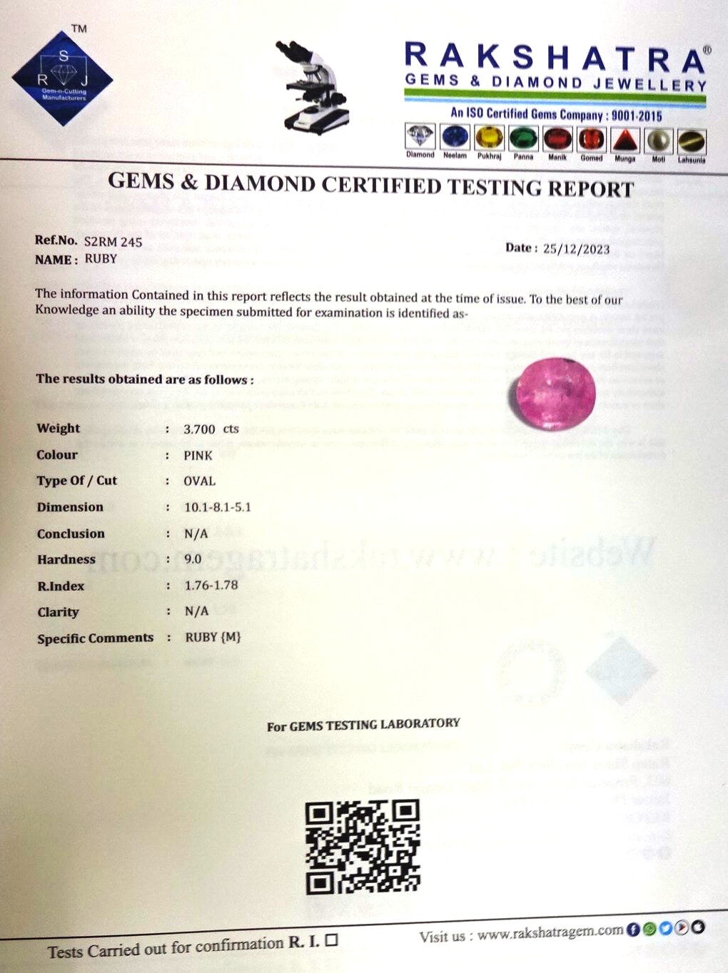 | SPECIFIC COMMENTS: | RUBY { M } |