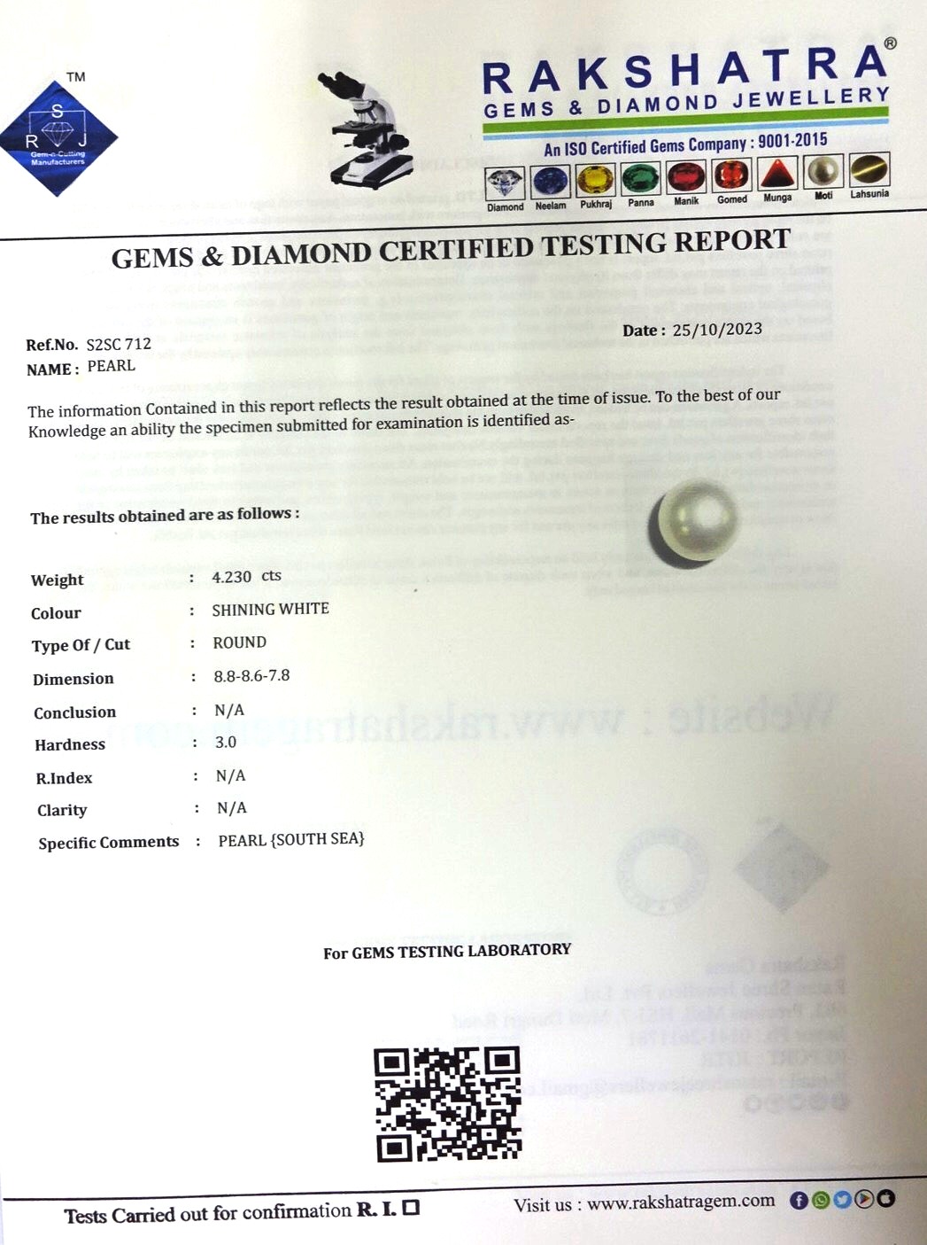 | SPECIFIC COMMENTS: | PEARL {SOUTH SEA} |