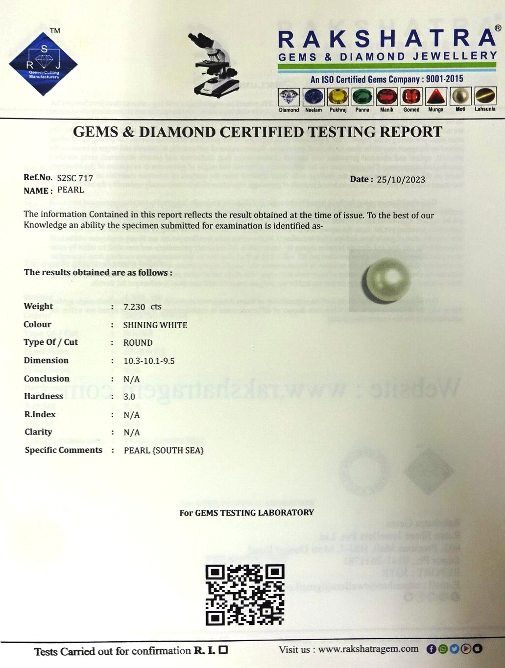 | SPECIFIC COMMENTS: | PEARL {SOUTH SEA} |