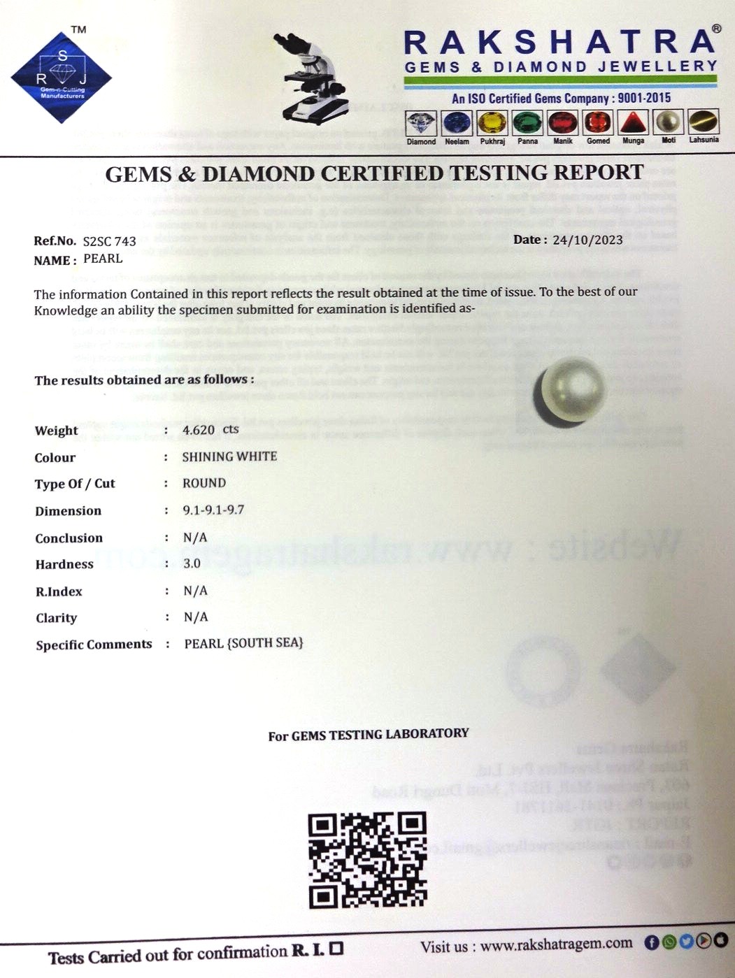 | SPECIFIC COMMENTS: | PEARL { SOUTH SEA } |