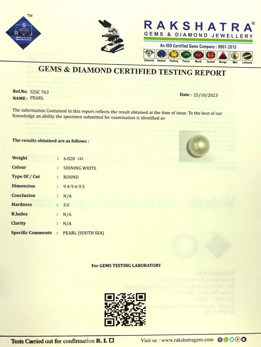| SPECIFIC COMMENTS: | PEARL { SOUTH SEA } |