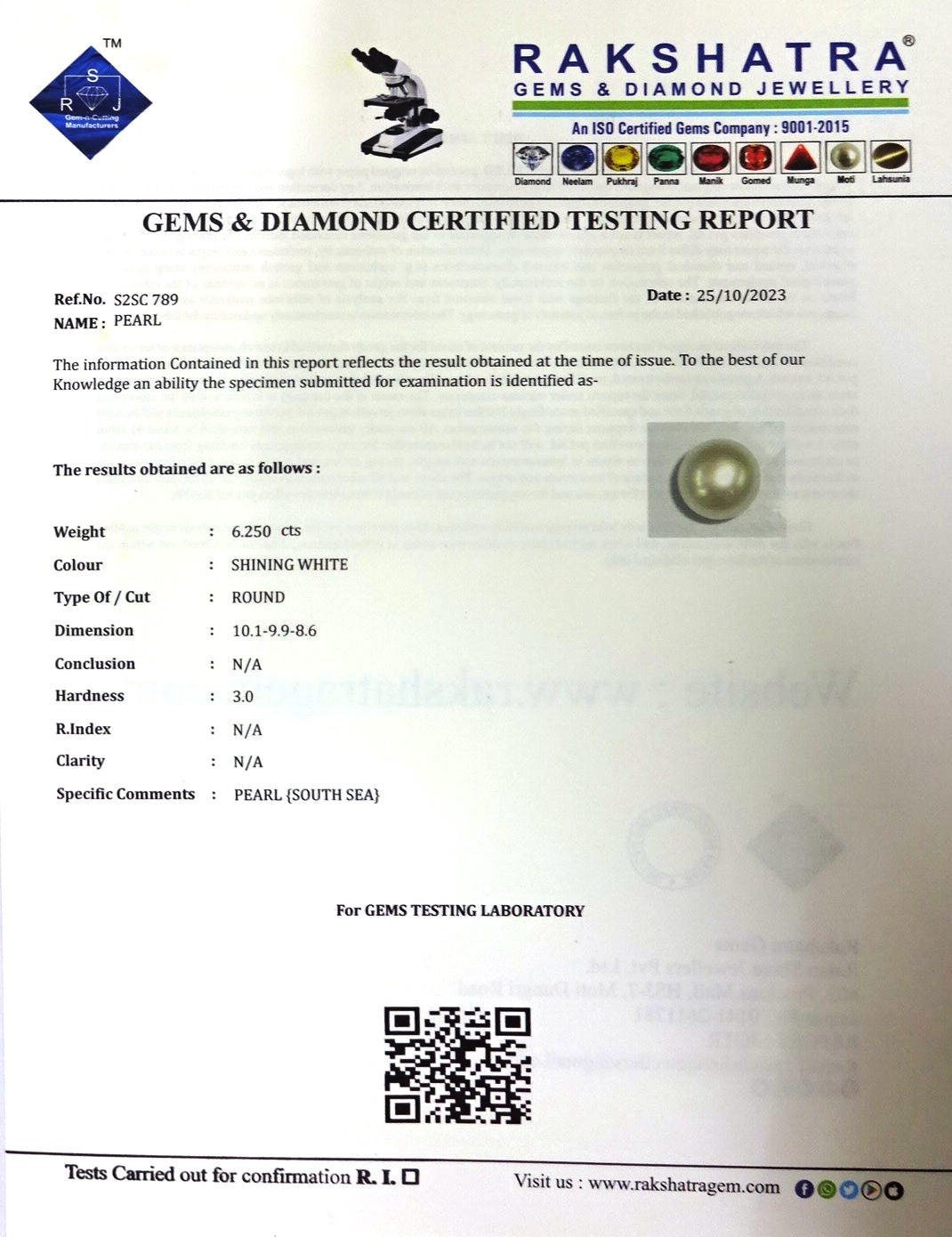 | SPECIFIC COMMENTS: | PEARL { SOUTH SEA } |