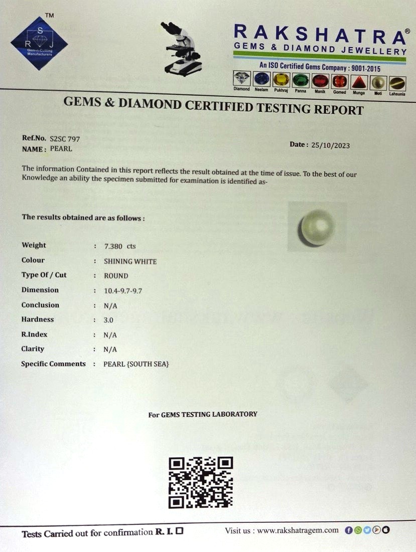| SPECIFIC COMMENTS: | PEARL { SOUTH SEA } |