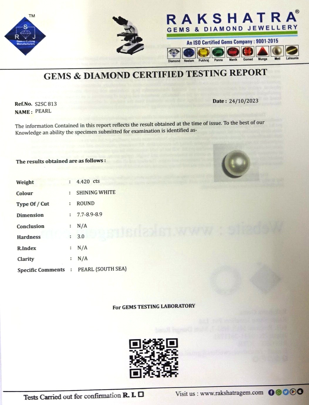 | SPECIFIC COMMENTS: | PEARL {SOUTH SEA} |